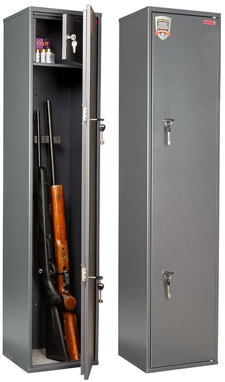 — Предназначен для хранения трёх ружей высотой до 1.36 м.— Толщина лицевой панели 1.5 мм.