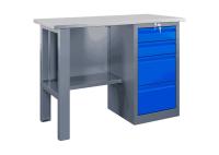 - Элегантное сочетание пыльно-серого и небесно-синего цветов придаёт верстаку привлекательный вид – это весьма существенно при установке в домашней мастерской или учебном заведении.