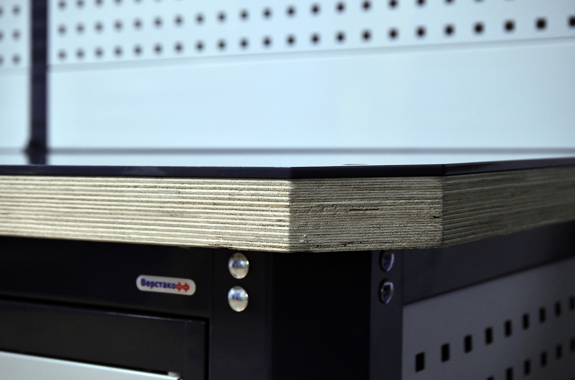 Несущий каркас верстака изготовлен из профилированной холоднокатаной стали высокой прочности, что придаёт ему особую устойчивость и позволяет выдерживать распределённую нагрузку до 1500 кг.